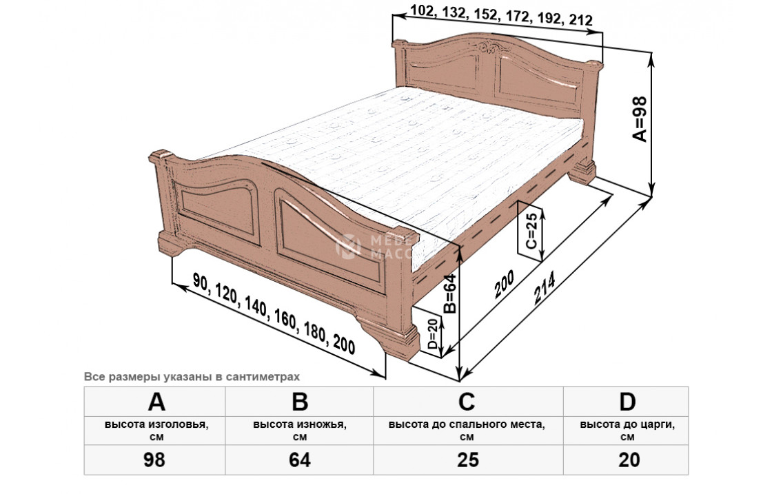 Королевская кровать Европа мод 1 изготовлена из натурального древесного массива. Модель имеет прочную конструкцию и благородный вид. Изделие, которое можно купить по выгодной цене в нашем интернет-магазине, отличается сплошными симметричными волнообразными спинками, переходящими в устойчивые ножки. Осуществляется доставка на дом по Миассу и Челябинской области .| Размер | Цена | |
